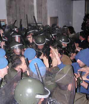 Fizik Bölümünde önceden önlem alan jandarma ekipleri öğrencilere copla müdahale etti. Öğrenciler ile Jandarma arasında yaklaşık bir saat süren arbede yaşandı. Polislerin Fizik Bölümünden ayrılmaları, öğrencilerin ise rektörlüğe kadar yürümelerinin ardından olay sona erdi.