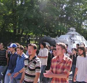 Solcu öğrencilerin, üzerinde "Vatan sana canım feda" yazılı pankartı da yırtmaları dikkat çekti. Okul içerisinde bir basın açıklaması yapan öğrencilerden bir grup yaralı arkadaşlarını ziyaret için İbn-i Sina Hastanesine gitti. Yaklaşık 300 kişilik grup, alınan yoğun güvenlik önlemleri altında Sakarya Caddesine yürüdü. "Türkeşin itleri, yıldıramaz bizleri", "Kürdistan faşizme mezar olacak" şeklinde sloganlar atan grup, Sakarya Caddesinde yaptıkları basın açıklamasının ardından olaysız dağıldı.