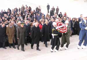 Çelik’in başkanlığındaki protokol, Aslanlı Yol’dan yürüyerek Atatürk’ün huzuruna çıktı. Bakan Çelik üzerinde, ’Milli Eğitim Bakanlığı’ yazılı çelengi mozoleye koydu ve ardından saygı duruşunda bulunuldu.