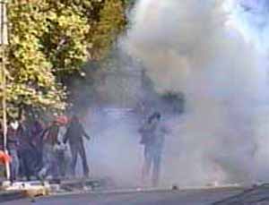 Polisle görüşen ve polisi ’iyi niyetli olmamakla’’ suçlayan öğrenci temsilcileri arkadaşlarının yanına döndü. Bu sırada gruptan bazıları kaldırımdan söktükleri taşları ve molotof kokteyllerini polise attı.