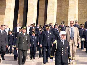 Emniyet Genel Müdürü Gökhan Aydıner, beraberinde Emniyet Genel Müdür Yardımcıları, Ankara Emniyet Müdürü Ercüment Yılmaz, Daire Başkanları ve Polis Akademisi ve Polis Koleji yönetici ve öğrencileri, Ankara Emniyet Müdürlüğü’nde ve Emniyet Genel Müdürlüğü’nde görev yapan 5 bin polisten oluşan heyet ile Anıtkabir’e geldi. Arslanlı yoldan yürüyen Emniyet Genel Müdürü Aydıner ve beraberindeki heyet, Atatürk’ün mozolesine çelenk bırakarak saygı duruşunda bulundu. Aydıner, daha sonra Misak-i Milli Kulesi’ne geçerek Anıtkabir Özel Defteri’ni imzaladı. Aydıner deftere şunları yazdı: