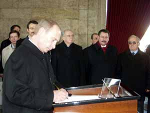 Cumhurbaşkanı Ahmet Necdet Sezer’in davetlisi olarak Ankara’ya resmi bir ziyarette bulunan Rusya Devlet Başkanı Vlademir Putin Anıtkabir’i ziyaret etti.