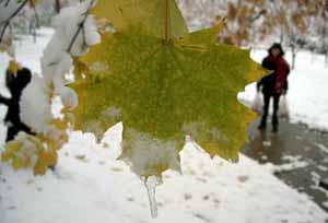 Tam sararmadan dondular: Ankarada sonbaharla birlikte yeşilden sarıya dönen yapraklar, renk dönüşümlerini tamamlayamadan, soğuk hava ve kar yağışının etkisi altında kaldı.
