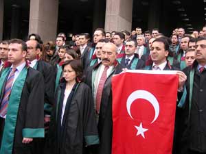 Ankara Adliyesinde görev yapan Baroda Birlik Gurubu yanlısı avukatlar, Mersinde Türk bayrağına yönelik saldırıyı protesto etti.