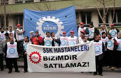 EMEK Platformu, SSK hastanelerinin Sağlık Bakanlığı’na devri çalışmalarını protesto için SSK Genel Müdürlüğü önünde bir protesto gösterisi yaptı. SSK Genel Müdürlüğü önünde toplanan EMEK Platformu yanlısı sendikalara bağlı yaklaşık 500 kadar kamu çalışanı ve işçi, "Hastaneler halkındır satılamaz", "AKP sağlığa zararlıdır", "SSK’ya uzanan eller kırılsın", "IMF’ye yumuşak, halka Kasımpaşalı" gibi sloganlar attılar.
