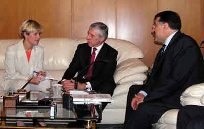 İngiltere Dışişleri Bakanı Straw ise bugünkü ziyaretini İngiltere Dışişleri Bakanı olarak gerçekleştirdiğini belirterek, "Bundan önce dört sene boyunca İçişleri Bakanı olarak görev yaptım. Dolayısıyla birçok konuda ortak tecrübelerimiz bulunmaktadır. Aynı zamanda sizin aileniz de futbolla ilgileniyor, benim ki de" dedi. Bir çocuğun kendisine, "Daha önce ev işlerinden sorumluydunuz, şimdi dışarı işlerinden" dediğini anlatan Straw, bu nedenle görüşecekleri birçok ortak konunun olduğunu kaydederek, "Terörizm ve uluslararası suçlar her iki ülkeyi de etkileyen birer hastalık niteliğinde. Geçen sene Kasım ayında İstanbul’da meydana gelen bombalama olayından sonra gösterilen yardımlardan dolayı teşekkür ediyorum" diye konuştu. Straw, kendi partilerinin kongresinde yaptığı konuşmada, "Teröristler seçecekleri kurbanlar konusunda seçici değildirler. İngiltere Başkonsolosluğuna bir saldırıda bulunmuştur. Ancak pek çok sayıda Türk polisi saldırıda ölmüştür" dediğini hatırlatarak, sözlerini şöyle sürdürdü: