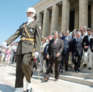 CHP Genel Başkanı Deniz Baykal, Lozan Antlaşması'nın 82. yıldönümü nedeniyle Anıtkabir'de düzenlenen törenlere katıldı. Baykal ve beraberindekilerin Anıtkabir'deki programı Aslanlı Yol'dan başladı. CHP'liler adına Atatürk'ün mozolesine çelenk bırakan Baykal, daha sonra Anıtkabir Özel Defteri'ni imzaladı.