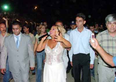 Şehir stadyumunda dün akşam düzenlen konserde şık kıyafeti ile sahneye çıkan Soyman, zerafeti ve sesiyle izleyenleri büyüledi.