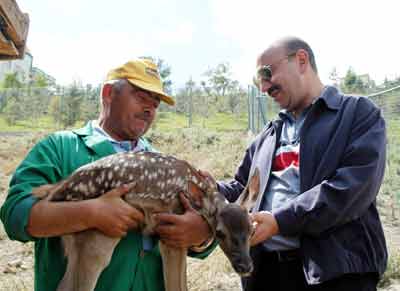 Çeşitli hayvan türlerinin bulunduğu Kalaba Vadisi’nde incelemelerde bulunan Keçiören Belediye Başkanı Turgut Altınok, yavru geyiğin bulunduğu barınağa gelerek küçük yavruyu sevdi. Geçtiğimiz yıl hizmete giren ve çocukların ilgisiyle karşılaşan aqua parkta çocuklarla da sohbet eden Başkan Altınok’a, çocuklar büyük ilgi göstererek kendilerine böyle bir hizmet sunmasından dolayı teşekkür ettiler.