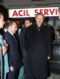 Basın mensuplarının alınmadığı program sırasında Erdoğan’ın bulunduğu Sincan Gençlik Merkezi’ne Sağlık Bakanı Recep Akdağ da geldi. Sincan Gençlik Merkezi’nden ayrılan Başbakan Erdoğan ve Sağlık Bakanı Recep Akdağ ile Başbakan’a eşlik eden Ankara Büyükşehir Belediye Başkanı Melih Gökçek, Sincan Devlet Hastanesi’ne geçti. Geceyarısı karşılarında Başbakan’ı gören hastane görevlileri ve ani ziyaretin şaşkınlığını yaşarken, Erdoğan, acil serviste hastaları ziyaret etti.