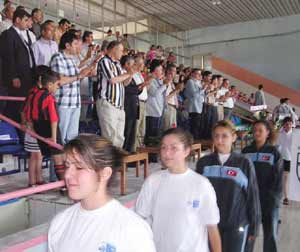 Gençlik ve Spor İl Müdürü Süleyman Arduç, yüzme branşına yoğun ilgi olduğunu belirterek, törenin verdiği heyecanla farkında olmadan bir sporcunun havuzda yüzdüğü için davetlilerden özür diledi.