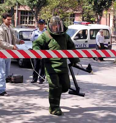 Olay yerine çağrılan bomba uzmanı ise, özel kıyafetini giydikten sonra paketi fünyeyle patlattı. Poşetin içinde çöp olduğu ortaya çıktı.