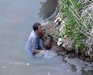 Eskişehirde dengesini kaybederek Porsuk Nehrine düşen alkollü şahsı sudan çıkarmak için itfaiye yetersiz kalınca, devreye polis ve vatandaşlar girdi.