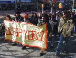 İstasyon Caddesi üzerinde toplanan Anadolu ve Osman Gazi üniversitelerinde öğrenim gören yaklaşık 100 öğrenci, polisin geniş güvenlik önlemleri altında ellerinde pankart ve dövizlerle Eskişehir Belediyesi önüne kadar yürüdü.