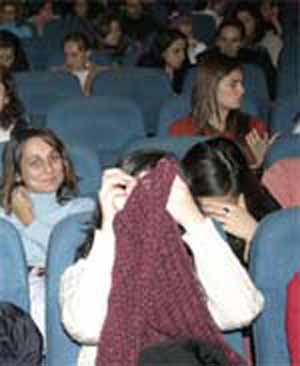 Eskişehir Anadolu Üniversitesi’nde düzenlenen `Gençlik, cinsellik ve korunma yöntemleri’ konulu konferansı izleyen üniversite öğrencileri fotoğraf çeken gazetecilerden yüzlerini sakladı.