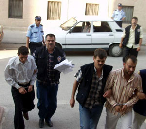 Emniyetteki işlemleri tamamlanan katil zanlıları Selli ve Kılıç ile ev sahibi Yasin Köroğlu (27) adliyeye sevk edildi. 5 saat süren sorgulamanın ardından Murat Selli ile Mehmet Kılıç, çıkarıldıkları mahkemece, "Tasarlayarak adam öldürmek, adam öldürmeye tam teşebbüs, hırsızlık, görevli polis memurunu tabancayla yaralama ve yağma" suçlarından tutuklandı. Yasin Köroğlu ise, suçlulara yardım ve yataklık etmekten tevkif oldu.
