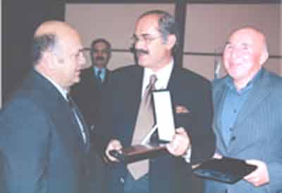 Büyükşehir Belediye Başkanı Prof. Dr. Yılmaz Büyükerşen, sosyal yardım projelerine maddi destek veren Eskişehirli iş adamlarından Cemalettin Sarar ve Tekin Çolpan’a şükran plâketi verdi.