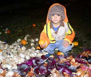 Çürük ve ezik olduğu için bırakılan meyve ve sebzeleri karıştırarak içerisinden yenilebilir olanları ayıran çocuklar, yanlarında getirdikleri kasalara koyarak evlerine götürüyor.