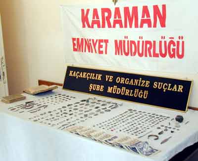 Edinilen bilgiye göre, F.A.’nın (25) elinde bulunan tarihi eserleri satmak için müşteri aradığı ihbarını alan kaçakçılık ekipleri, şahısla irtibata geçti. F.A, alıcı kimliğindeki Kaçakçılık ve Organize Suçlarla Mücadele Şubesi ekiplerine, elinde bulunan 314 adet çeşitli dönemlere ait sikke ve obje, 1 adet tarihi Kur’an-ı Kerim ile 20 adet eski yüzlük İskoçya parası satmak isterken suçüstü yakalandı.