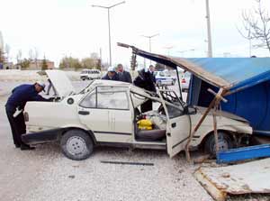 Karamanda bir otomobilin kaldırımda bulunan otobüs durağına çarpması sonucu meydana gelen trafik kazasında 1 kişi hayatını kaybederken 1 kişi de yaralandı.