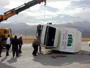 Karamanda şiddetli lodos, mobilya yüklü bir kamyoneti devirirken, iki öğrencinin de yaralanmasına yol açtı. Eskişehirden yüklediği mobilyaları Mersinin Silifke İlçesine götürmekte olan Mustafa Damar yönetimindeki 26 DD 957 plakalı kamyonet, Karamana 20 kilometre kala, Yollarbaşı Beldesi yakınlarında şiddetli lodos nedeniyle sürücünün direksiyon hakimiyetini kaybetmesi sonucu devrildi.