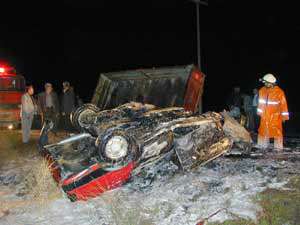 Kaza sonrası LPGli olan otomobil alev alarak yanarken, sürücü Hüseyin Çilek, sıkıştığı şoför malinde yanarak can verdi.