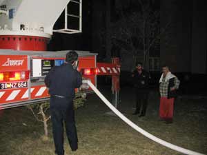 Bahçedeki yumuşak zeminden dolayı da itfaiye aracının merdivenleri açılmazken, itfaiye ekipleri binanın içinden hortum çekmek suretiyle yangına müdahale etmek zorunda kaldı. Yaklaşık 1 saat gecikmeli müdahalenin ardından yangın kontrol altına alınırken, evde büyük maddi hasar meydana geldi.