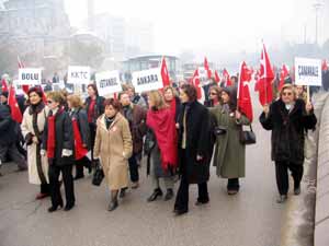 Türk kadınına seçme ve seçilme hakkı verilişinin 70. yıldönümü kutlamalarını bu yıl Kayseri’de gerçekleştirme kararı alan Türk Kadınlar Birliği, Atatürk Stadyumu’ndan Cumhuriyet Meydanı’na kadar bir yürüyüş düzenledi. Türk Kadınlar Birliği Genel Başkanı Sema Kendirci ve şube başkanlarının katıldığı yürüyüşte, kadınlar bando eşliğinde marşlar söyledi.
