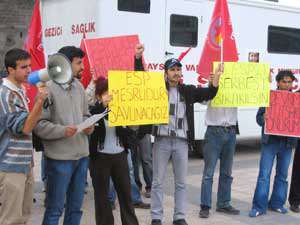 Tarihi Hunat Medresesi önünde toplanan bir grup ESPli, Ankarada tutuklanan 18 ESPlinin serbest bırakılması için eylem yaptı. Pankartlar açarak eylem yapan gruba vatandaşlar tepki gösterdi. ESP adına konuşan Muharrem Demirkıran, 11 Martta Ankarada görülen Mahkemede, 46 ESPliden 28nin serbest bırakılması ve 18i hakkında da yasadışı bağlantılarının olup olmadığının araştırılması için tutuklanmalarına tepki göstererek, "Bugün bu arkadaşlarımız örgüt üyeliğinden yargılanıyorlar. ESP gibi, fiili meşru mücadeleden gücünü alan ve yasal zemine oturan bir platformu yasadışı ilan etmeye çalışıyorlar. Örgüt üyesi olmasa da örgüt üyeliğinden yargılamaya çalışıyorlar" dedi.