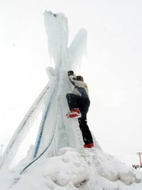 KAYSERİ (İHA) - Erciyes Kayak Merkezi’nde turizmciler, buzdan Erciyes Dağı maketi yaptırıyor.