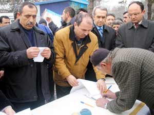 Konuşmanın ardından vatandaşlar kurulan standta imza atarak, 10 gün sürecek kampanyaya destek verdi.