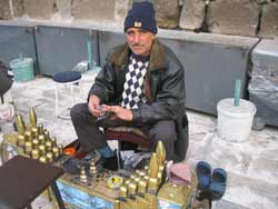 Şehir merkezindeki Bürüngüz Camii yanında ayakkabı boyacılığı yapan Şen Türk (50), 15 yaşından bu yana ayakkabı boyacılığı yaptığını belirtirken, "Vakitleri boşa öldürmektense eksi 18 derecede bekler, ekmek parası kazanırım" dedi.