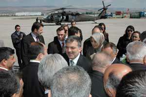 Eşi Hayrünnisa Gül ile birlikte memleketi Kayseriye helikopterle gelen Dışişleri Bakanı ve Başbakan Yardımcısı Gül, Erkilet Havaalanında Vali Nihat Canpolat, daire müdürleri ve çok sayıda partili tarafından karşılandı.