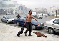 Kayseri’de şehrin en işlek yeri olan Cumhuriyet Meydanı’nda yarı çıplak bir vaziyette dolaşan Hacı Ali Kızmaz (34) isimli şahıs, ortalığı birbirine kattı. Uzun süredir işsiz olduğu öğrenilen Hacı Ali Kızmaz, kepçe operatörlüğü yaptığını ancak, kimsenin kendisine iş vermediğini söyledi. Çevresindekilere ve kendisini sakinleştirmeye çalışan polislere bağıran işsiz şahıs, gazetecilerin "Neden isyan ediyorsunuz?" şeklindeki sorusu üzerine, "Nasıl isyan etmeyeyim. Kimse bana bir lokma ekmek vermiyor. Ben 18 yıl cezaevinde kaldım. 4 yıl da hücre cezası verdiler" dedi.