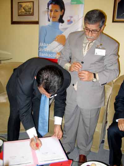 Konuşmaların ardından Akbank yetkilileri ile KTO Başkanı Hasan Ali Kilci arasında kredi protokolü imzalandı.