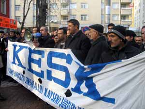 Kayseri’de Kamu Emekçileri Sendikası (KESK) üyeleri, AK Parti İl Teşkilatı önünde ABD’nin Irak operasyonunu protesto etti.