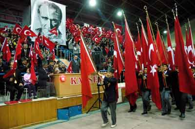 Kayseri’de Cumhuriyet Meydanı’nda gerçekleştirilmesi planlanan 29 Ekim Cumhuriyet Bayramı kutlama törenleri, yağışlı hava nedeniyle Atatürk Spor Salonu’na alındı. Sabah saatlerinde Cumhuriyet Meydanı’nda toplanan tören birlikleri ve öğrenciler, yağışın durması ümidiyle bir süre bekletildi. Daha sonra Kayseri Valiliği tarafından törenin salonda gerçekleştirileceği duyuruldu. Kutlamaların salona alınması nedeniyle, askeri tören birliklerinin geçiş töreni iptal edildi. Atatürk Spor Salonu’ndaki kutlamalar ise, halk oyunları ekiplerinin gösterileriyle başladı. Büyükşehir Belediyesi’nin bayrak dağıttığı törenler renkli görüntülere sahne olurken, salonun dolması nedeniyle bazı vatandaşlar içeri alınmadı.
