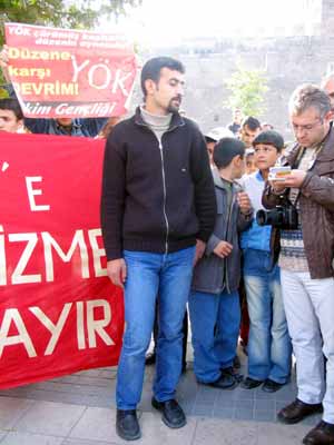Grup, "YÖK’e hayır", "Yaşasın parasız bilimsel demokratik anadilde eğitim mücadelemiz", "YÖK kalkacak, polis gidecek, üniversiteler bizimle özgürleşecek" ve "Öğrenciyiz haklıyız kazanacağız", "F tipi üniversite istemiyoruz" gibi sloganlar atarak eylemine başladı. Ezilenlerin Sosyalist Platformu (ESP), Emek Gençliği, Ekim Gençliği ve Gençlik Dernekleri Federasyonu adına bir basın açıklaması yapan Muharrem Demirkıran, YÖK’e karşı mücadelenin sadece gençliğin sorunu değil, tüm halkın sorunu olduğunu söyledi.