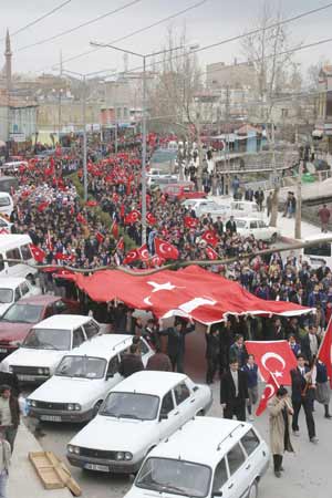Kayserinin Yahyalı İlçesinde Ülkü Ocakları ile sivil toplum örgütlerinin organize ettiği ve tüm ilçe halkının destek verdiği "Türk Bayrağına Saygı Yürüyüşü"ne yaklaşık 5 bin kişi katıldı.
