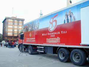 Milli Egemenlik yılı dolayısıyla düzenlenen etkinlikler çerçevesinde 40 ili dolaşacak olan TIRla ilgili bilgi veren Meclis Basın Halkla İlişkiler görevlisi İsmail Fidenay, 85. yıl kutlama etkinlikleri çerçevesinde belirlenen pilot illerin dolaşılacağını belirtti.