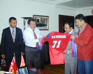 Kırıkkale Valisi Mustafa Bahrettin Demirerle uzun süre görüşen yönetim, özel olarak hazırlanan 71 yazılı Kırıkkalespor formasını hediye etti. Gençlik Spor İl Müdürü Remzi Arkaltı hediye edilen formayı hatıra olarak saklayacağını belirterek, yönetime başarılar diledi.