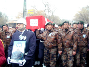 Bağdat’taki Türk Büyükelçiliği’ni koruma görevlilerini taşıyan konvoya Musul’da düzenlenen silahlı hain saldırıda şehit olan güvenlikçiler arasında yer alan Komiser Bilal Ülgen’in (26) cenazesi, Kırıkkale’de gözyaşları arasında toprağa verildi