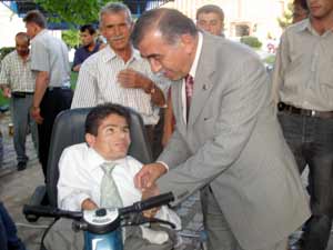 Konuşmasının ardından özürlü bir bayanın kendisinden bilgisayar istemesine de kayıtsız kalmayan Vali Hatipoğlu, kendisine bilgisayar alacağının sözünü verdi. Daha sonra Vali Hatipoğlu, Belediye Başkanı Çakır, Emniyet Müdürü Aydemir tarafından sandalyelerin dağıtımı gerçekleştirildi.