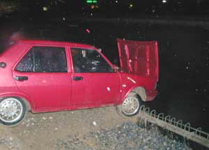 Konya'da alkol alıp arabayla gezen 3 kişi, belediyenin alt geçit inşaatı için açtığı çukura düştü. İnşaat demirlerine takılan araba, 10 metrelik çukura düşmekten son anda kurtuldu.