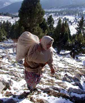 Soğuk ya da sıcak hava dinlemeden dağlara çıkarak ekmek mücadelesi veren kadınlar, güç çalışma koşullarına rağmen ekmek parası uğruna azminden hiçbir şey kaybetmiyor.