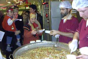 Aşure dağıtım yeri önünde uzun kuyruklar oluşturan müşteriler, aşure alabilmek için uzun süre bekledi. 6 gün sürecek olan aşure festivalinde, çocuklar için de çeşitli etkinlikler düzenlenecek.