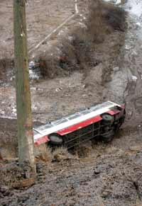 Hüseyin Demiraslan (31) idaresindeki Konya Büyükşehir Belediyesi’ne ait 42 KZ 206 plakalı yolcu otobüsü, merkez Selçuklu İlçesi’ne bağlı Tatköy’e sefer yaparken, Sille’yi geçtikten 2 kilometre sonra virajı alamayarak, önce yolun kenarında bulunan elektrik direğine çarptı, sonra da 10 metrelik uçuruma yuvarlandı.
