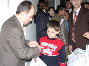 Konya Emniyet Müdürlüğü tarafından Çocuk Şube Amirliği’nde organize edilen programda 50 yardıma muhtaç çocuğa, Kurban Bayramı dolayısıyla kesilen 7 küçükbaş hayvanın eti, kolonya ve şeker verildi. Çocuk Şube Amiri Galip Kahya tarafından verilen hediyeleri alan 25 çocuğun mutluluğu gözlerinden okunurken, diğer 25 çocuğa ise hediyeleri evlerinde verilecek.