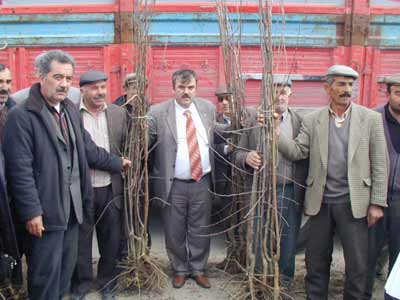 Konuşmanın ardından Karatay Ziraat Odası Başkanı Derviş Davaslı, fidanları köy muhtarlarına dağıttı.