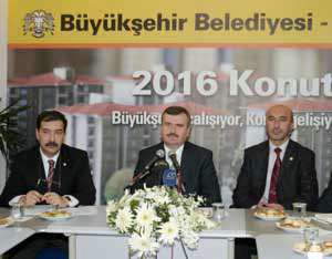 Toplu Konut İdaresi (TOKİ) Finansman Daire Başkanı Mehmet Dizdar ve AK Parti Konya Milletvekili Hasan Angı ile birlikte düzenlediği basın toplantısında konuşan Konya Büyükşehir Belediye Başkanı Tahir Akyürek, TOKİ Konutları hakkında bilgi verdi.